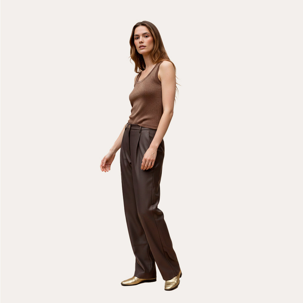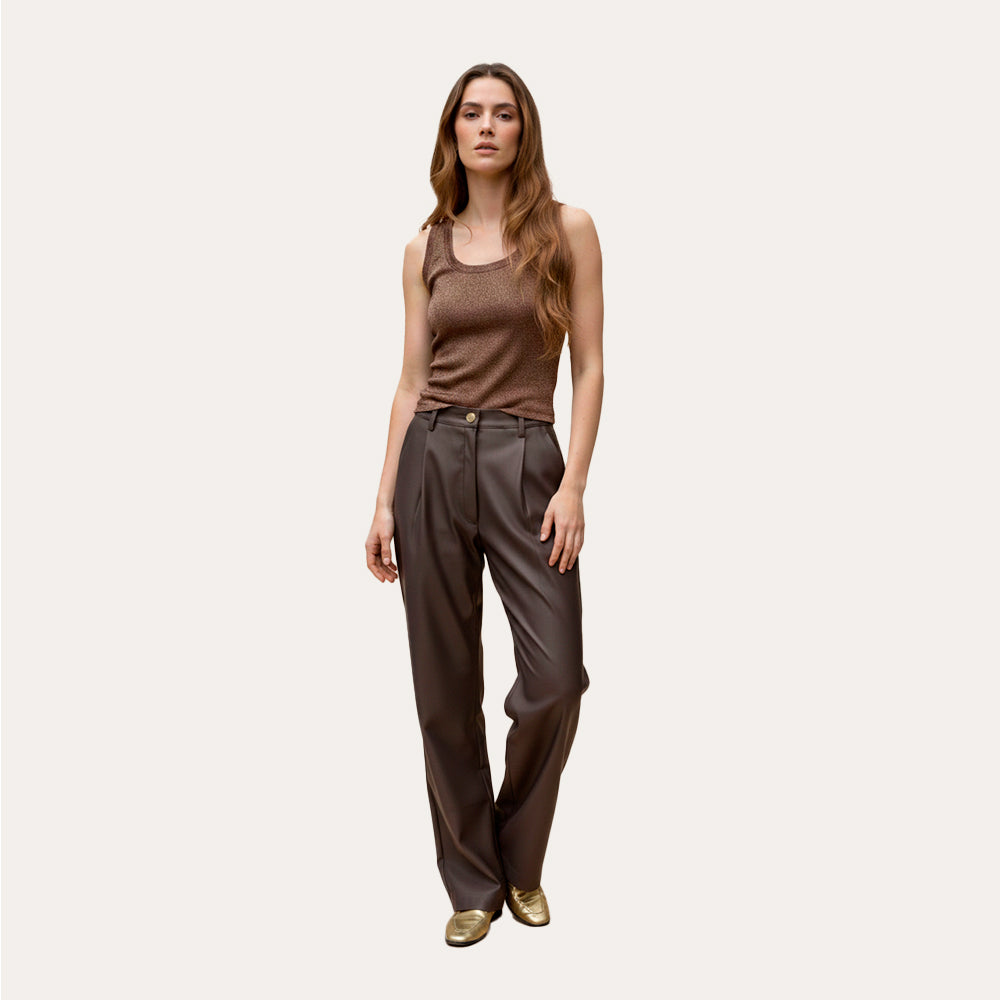 Musculosa de brillo sutil con caída cómoda y ajuste flexible. Aporta luminosidad sin excesos, ideal para looks de día o noche.